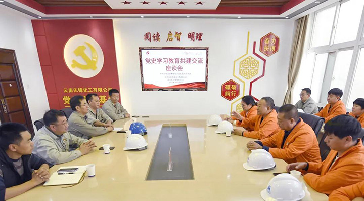 马祥能一行深入先锋化工生产一线,实地了解企业生长历程、工艺技术、产品结构、装置运行等方面情况,先后旅行了先锋化工生长历程展板、生产装置现场、党员实训基地、党建文化长廊、廉政建设长廊、云岭先锋书屋,调阅了党史学习教育相关台账资料。座谈会上,双方围绕如何进一步深化党史学习教育实效、增进党史学习与业务深度融合,如何发挥好党支部战斗堡垒作用和党员先锋模范作用等问题进行交流探讨,从深入学习领会习近平总书记“七一”重要讲话精神和关于党史学习教育重要指示精神,充分认识开展党史学习教育的重大意义;推进“我为群众办实事”实践运动,深入开展党史学习教育等方面相互学习交流实践经验。