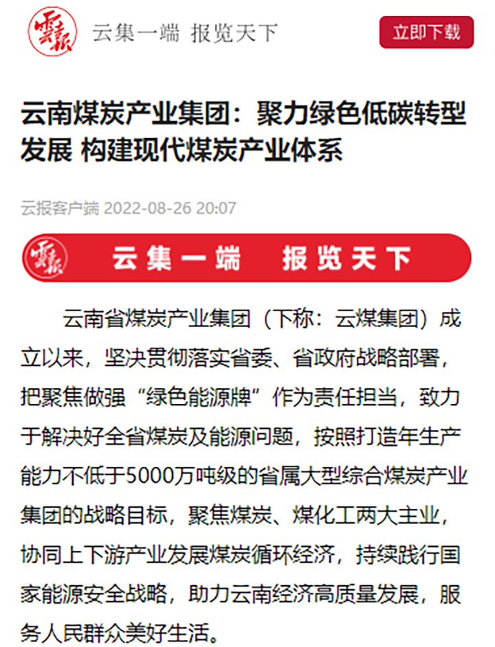 ÔÆÃº¼¯ÍÅÖ÷ÒªÂôÁ¦ÈËÌåÏÖ£¬×÷ÎªÔÆÄÏʡú̿¹¤Òµ¸ßÖÊÁ¿Éú³¤µÄÖØÒªÊµÊ©Ö÷ÌåºÍú̿×ÊÔ´ÕûºÏÖØ×éרҵ»¯Æ½Ì¨¡£Î´À´£¬ÔÆÃº¼¯ÍŽ«Á¬Ðø¹á³¹Âäʵʡί¡¢Ê¡Õþ¸®×öÇ¿¡°ÂÌÉ«ÄÜÔ´ÅÆ¡±£¬ÒÔ´òÔì³ÉΪ¾ßÓÐÇøÓò¾ºÕùÁ¦µÄǧÒÚ¼¶ÃºÌ¿¹¤Òµ¼¯ÍÅΪĿ±ê£¬¼ÓËÙתÐÍÉú³¤£»×ÅÁ¦Éú³¤ÂÌÉ«¹¤Òµ£¬´òÔìÇå½àú̿ÄÜÔ´£¬Íƶ¯ÃºÌ¿ÐÐÒµ¿ÉÁ¬ÐøÉú³¤£»ÊµÏÖ¡°´òÔìÇå½à¸ßЧÏÖ´ú¾ÅÓÎÀϸç¾ãÀÖ²¿¹¤ÒµÌåϵ Öþ¾ÍÂÌÉ«Á¢Òì»ù´¡ÄÜÔ´³¤Çà»ùÒµ¡±µÄÔ¸¾°£¬Ôö½øÔÆÄϾ¼Ã¸ßÖÊÁ¿Éú³¤¡£