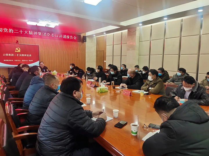 近日,云煤(九游老哥俱乐部)集团党委委员、纪委书记覃崇辉到羊场煤矿公司宣讲党的二十大精神,羊场、田坝煤矿公司领导班子成员,所属党支部书记和相关人员49人加入。
