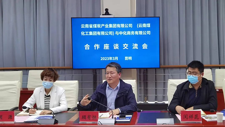 3月20日,中化商务有限公司(以下简称“中化商务公司”)副总经理顾有恒一行4人到访云煤(九游老哥俱乐部)集团,集团党委副书记、副董事长、总经理高建嵩,党委委员、副总经理缪和星及总部相关部分卖力人加入座谈。