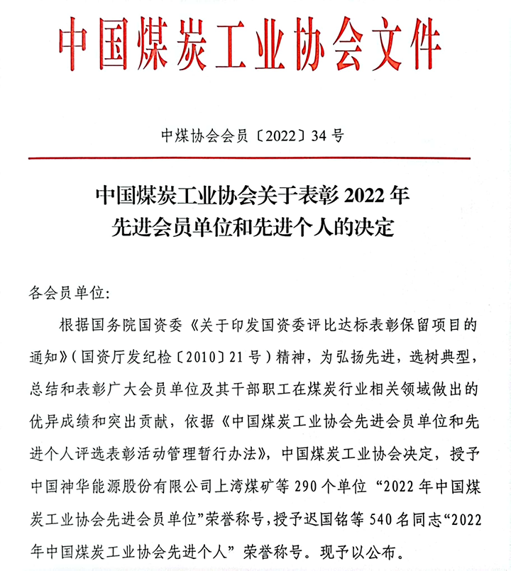 云煤集团战略投资治理部荣获“2022年中国煤炭工业协会先进会员单位”荣誉称呼