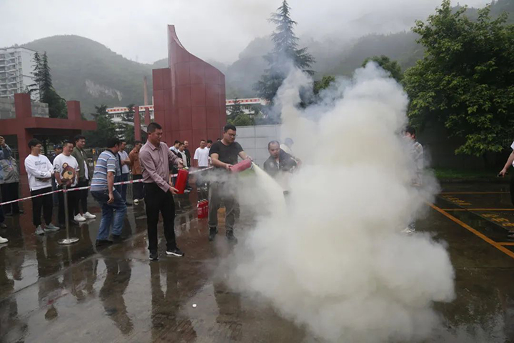 应急疏散结束后,救护队副队长对全体人员进行了火灾应急逃生知识科普、灭火器使用操作培训,使在场职工熟悉火灾事故应急逃生要领,掌握消防器材的使用;救护队队长与全体参演人员分享事故救援经过,招呼各人要注意宁静、珍爱生命。