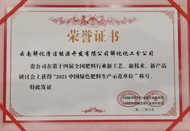 6ÔÂ29ÈÕ£¬µÚÊ®ËĽìÈ«¹ú·ÊÁÏÐÐҵй¤ÒÕ¡¢Ð¼¼Êõ¡¢Ð²úÆ·ÑÐÌÖ»áÔÚºÓÄÏÖ£ÖÝÕÙ¿ª£¬ÔÆÄϽ⻯Çå½àÄÜÔ´¿ª·¢ÓÐÏÞ¹«Ë¾½â»¯»¯¹¤·Ö¹«Ë¾ÈÙ»ñ¡°2023ÖйúÂÌÉ«·ÊÁÏÉú²úʾ·¶µ¥Î»¡±³Æºô¡£