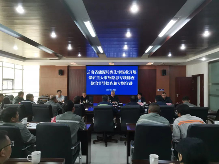 近日,云南省能源局党组成员、副局长田雄伟率队到先锋煤业公司开展重大事故隐患专项排查整治督导检查暨专题宣讲,昆明市工信局煤炭随处长高双、集团驻矿宁静监督员、公司在矿班子成员及有关部室卖力人加入督导检查和宣讲。