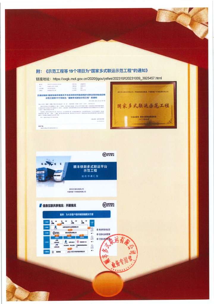 2023Äê11Ô£¬Ë³·á¶àÁªÆ½Ì¨Ê¾·¶¹¤³Ìͨ¹ýÁ˹ú¼ÒµÚÈýÅú¶àʽÁªÔËʾ·¶¹¤³ÌÑéÊÕ£»¹ú¼Ò½»Í¨ÔËÊ䲿ר¼Ò×é¶Ô¹«Ë¾ÔÚÐÅÏ¢»¯½á¹¹Ó뽨Éè·½Ãæ¸øÓèÁ˿϶¨¡£