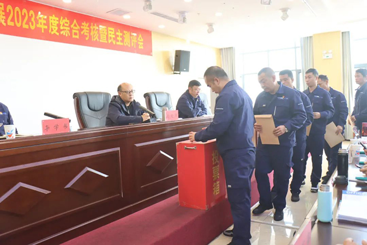 近日,云煤(九游老哥俱乐部)集团第九考核组到罗平东城公司开展2023年度综合考核暨民主测评。公司党总支书记、董事长李世荣主持集会,公司领导班子成员、中层治理人员、职工代表等共40人加入考核测评会。