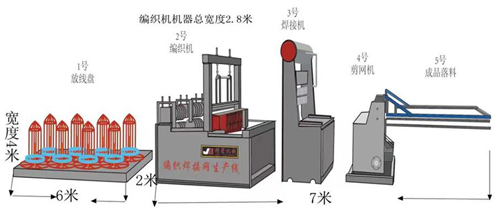 2023年以来,随着市场变革和客户需求,云南能达实业有限公司不绝对产品进行革新升级,在生产勾花网、平焊钢筋网的基础上,于20241月新建了一条ZFBH-1500型矿用编织焊接钢筋锚网生产线。该型锚网生产线突破了古板的人工编织、人工焊接模式,提高了纬丝编织次数与机械稳定性,所生产的编织焊接钢筋网片,是新兴的矿用支护网,其特点是先编后焊,结构美观,坚固耐用,具有拉力强、耐腐化、装置便当、易于施工等特点,广泛用于矿山巷道、煤场井道、建筑隧道、堤坝防护和边坡治理等方面的支撑和防护。