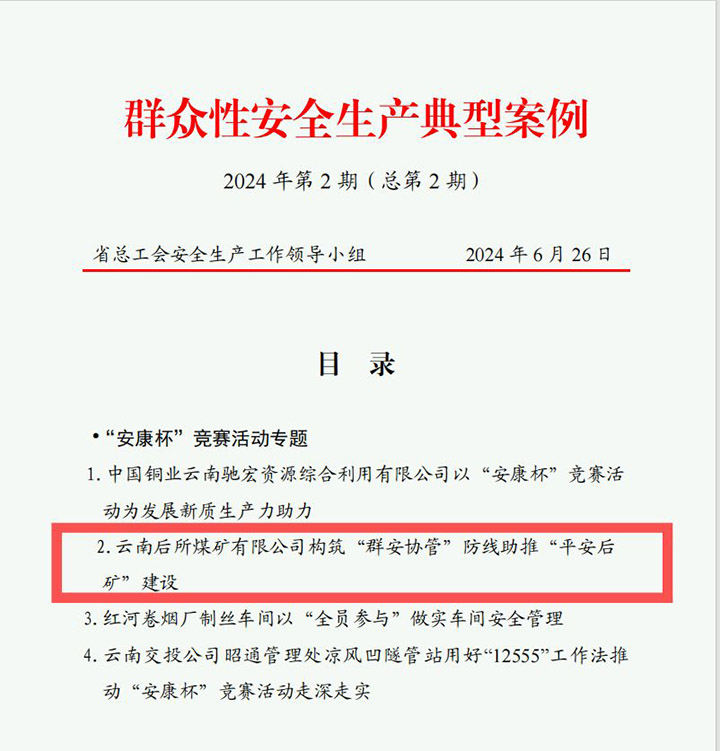 ÔÆÄϺóËùú¿óÓÐÏÞ¹«Ë¾½ô½ôÎ§ÈÆÐ§À͸ßÖÊÁ¿Éú³¤Ä¿±ê£¬ÒÔ¡°°²¿µ±¡±¾ºÈüÔ˶¯ÎªÖØÒª×¥ÊÖ£¬×ÅÁ¦Ç¿»¯×éÖ¯°ü¹Ü¡¢ÔðÈÎÂäʵ¡¢½¡È«»úÖÆ¡¢¹æ·¶ÐÐΪ¡¢´´Á¢Çé¿öµÈ»·½Ú£¬Á¬Ðø¿ªÕ¹Ôö½øÖ°¹¤Ö÷Ìå×÷Ó÷¢»Ó¡¢ÆóÒµÖ÷ÌåÔðÈκÍȫԱÄþ¾²Éú²úÔðÈÎÂäʵ£¬È·±£ÈºÖÚÐÔÄþ¾²Éú²úÔ˶¯³£Ì¬³¤Ð§£¬²»¾øÌáÉýÆóÒµÄþ¾²ÖÎÀíÄÜÁ¦£¬Ôö½øÊµÖÊÄþ¾²¡¢ÂÌÉ«Éú³¤¡£