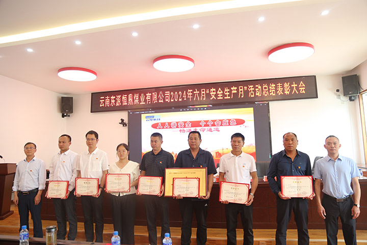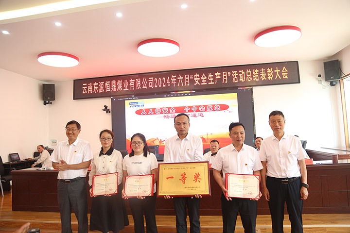 公司副总经理李正对六月“宁静生产月”事情作了总结,公司党委副书记、纪委书记、工会主席赵云召宣读《云南东源恒鼎煤业有限公司关于表扬2024年“宁静生产月”运动先进集体和个人的决定》,希望受到表扬的先进集体和个人珍惜荣誉,发挥结果,再接再厉,为公司宁静生产事情做出新的孝敬。公司各煤矿及全体职工要以受表扬的先进单位和个人为模范,总结经验,寻找差别,努力事情,为包管公司宁静生产状况连续稳定好转保驾护航。公司领导为受表扬的先进集体和个人进行颁奖。